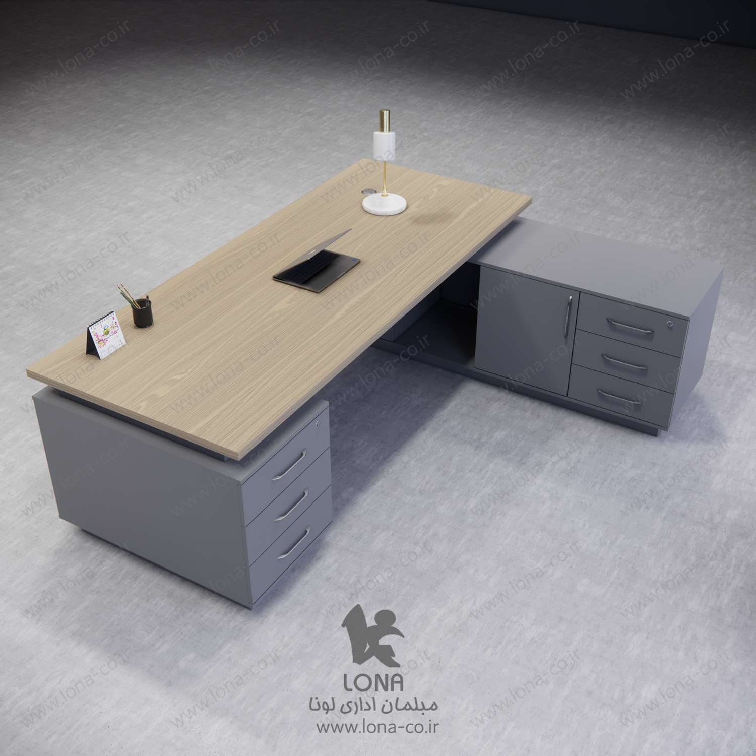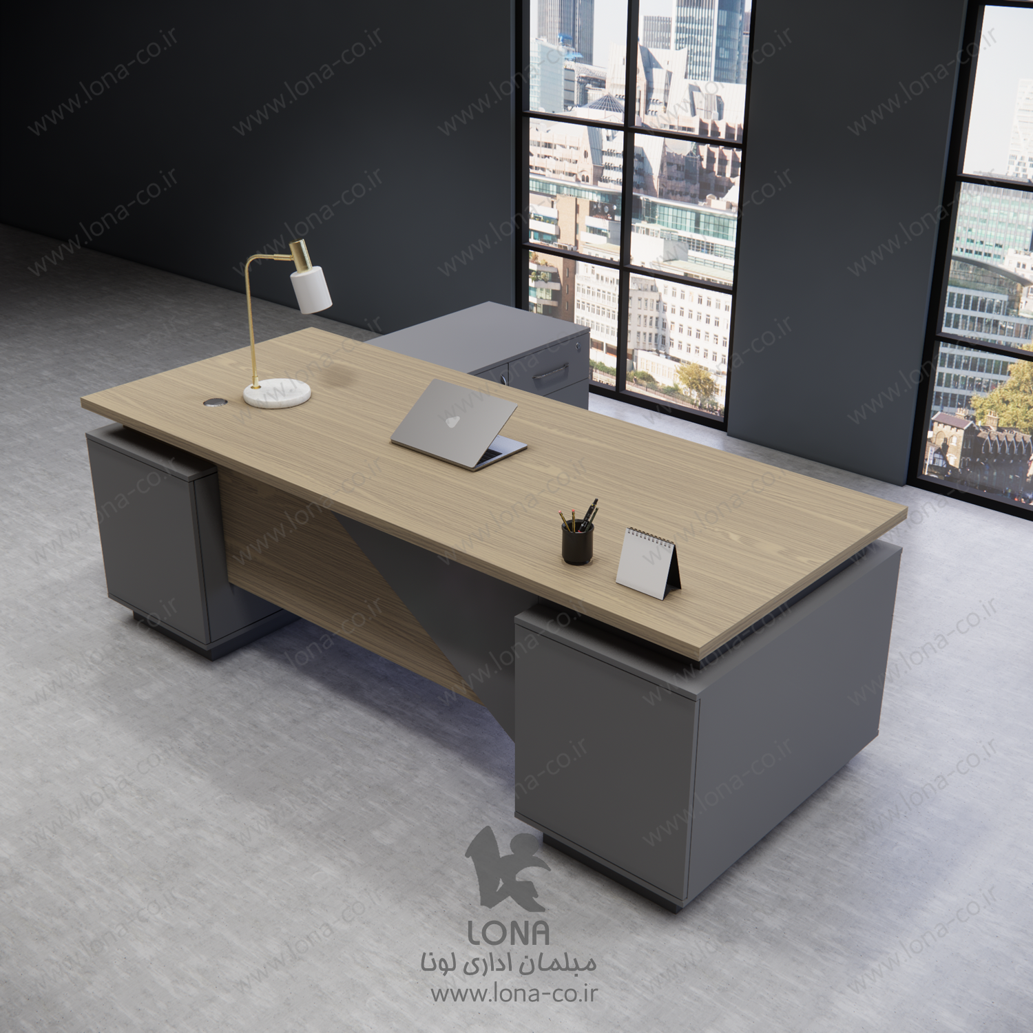 با میز رئیس Lona B-200، دفتر کار خود را به سطح جدیدی از شیک و کارایی برسانید! طراحی مدرن و منحصر به فرد این میز، جلوهای لوکس به محیط کار شما میبخشد. فضای وسیع و جای کافی برای دستگاههای مختلف شما را در مدیریت امور روزانه یاری میکند. همین حالا دفتر کار خود را متحول کنید و تاثیر اول خوب بگذارید!